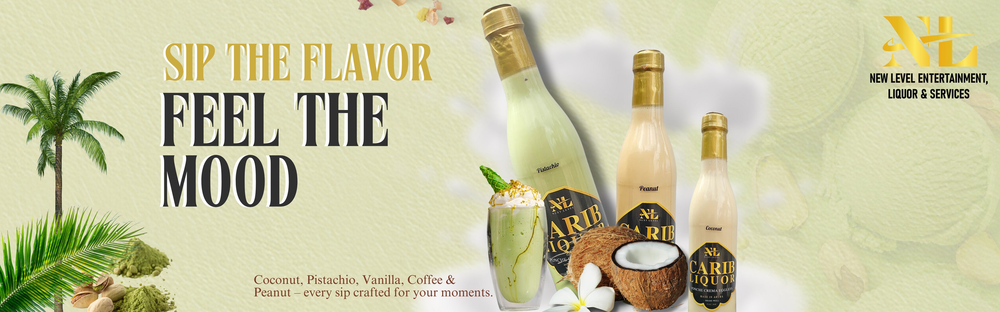 Discover our creamy liquor collection a luxurious blend of natural ingredients and bold, exotic flavors like coffee, vanilla, pistachio, peanut, and coconut. Preservative-free and irresistibly smooth, every bottle is crafted for a refined and indulgent experience.