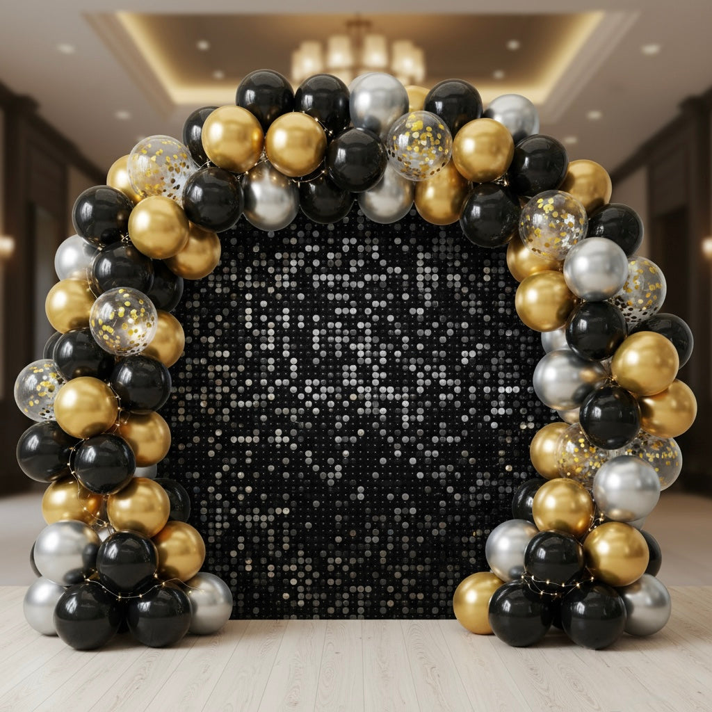Elegant black panels perfect for weddings, birthdays, parties, and displays. Customizable sizes: