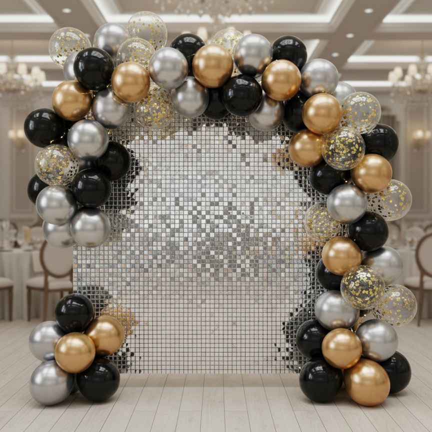 Shimmering silver panels perfect for weddings, birthdays, parties, and displays. Customizable sizes: